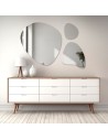 Modernes Spiegel-Set FLORA mit organischen Formen über einer minimalistischen grauen Kommode – elegante Raumgestaltung