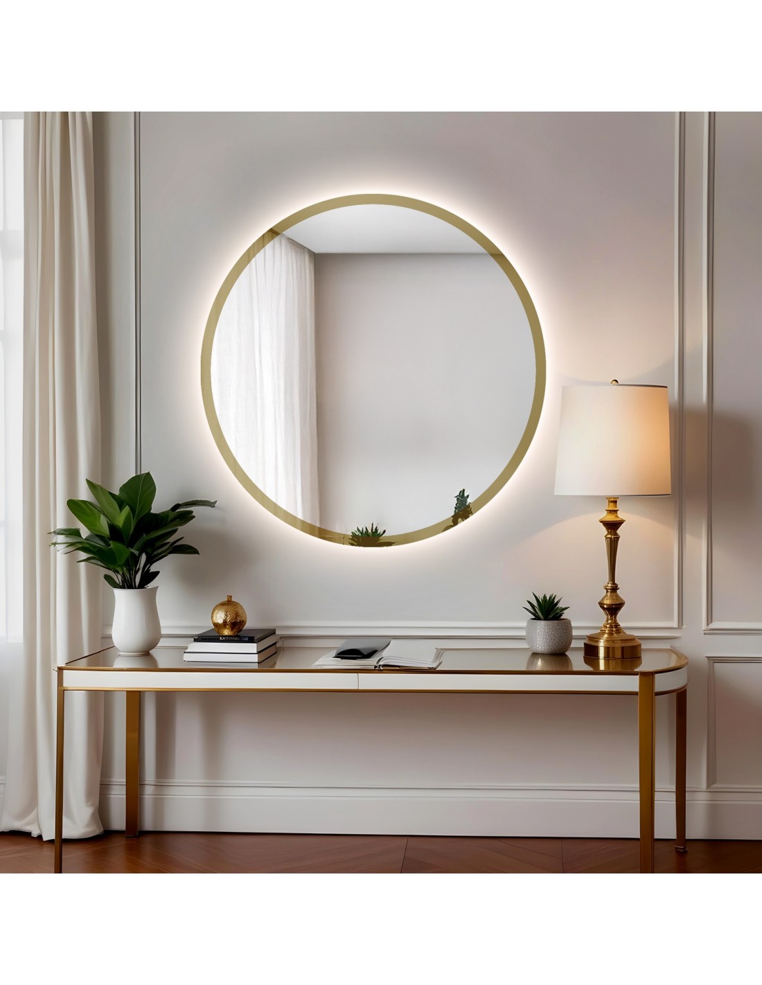 Runder Spiegel im goldglänzenden Rahmen mit Beleuchtung - BELLA LED
