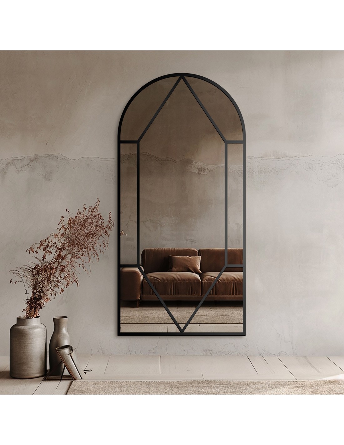 Bogenspiegel mit Sprossenleisten Rahmen in Loftoptik MDF - FENSTER IV - Rahmenfarbe nach Wahl